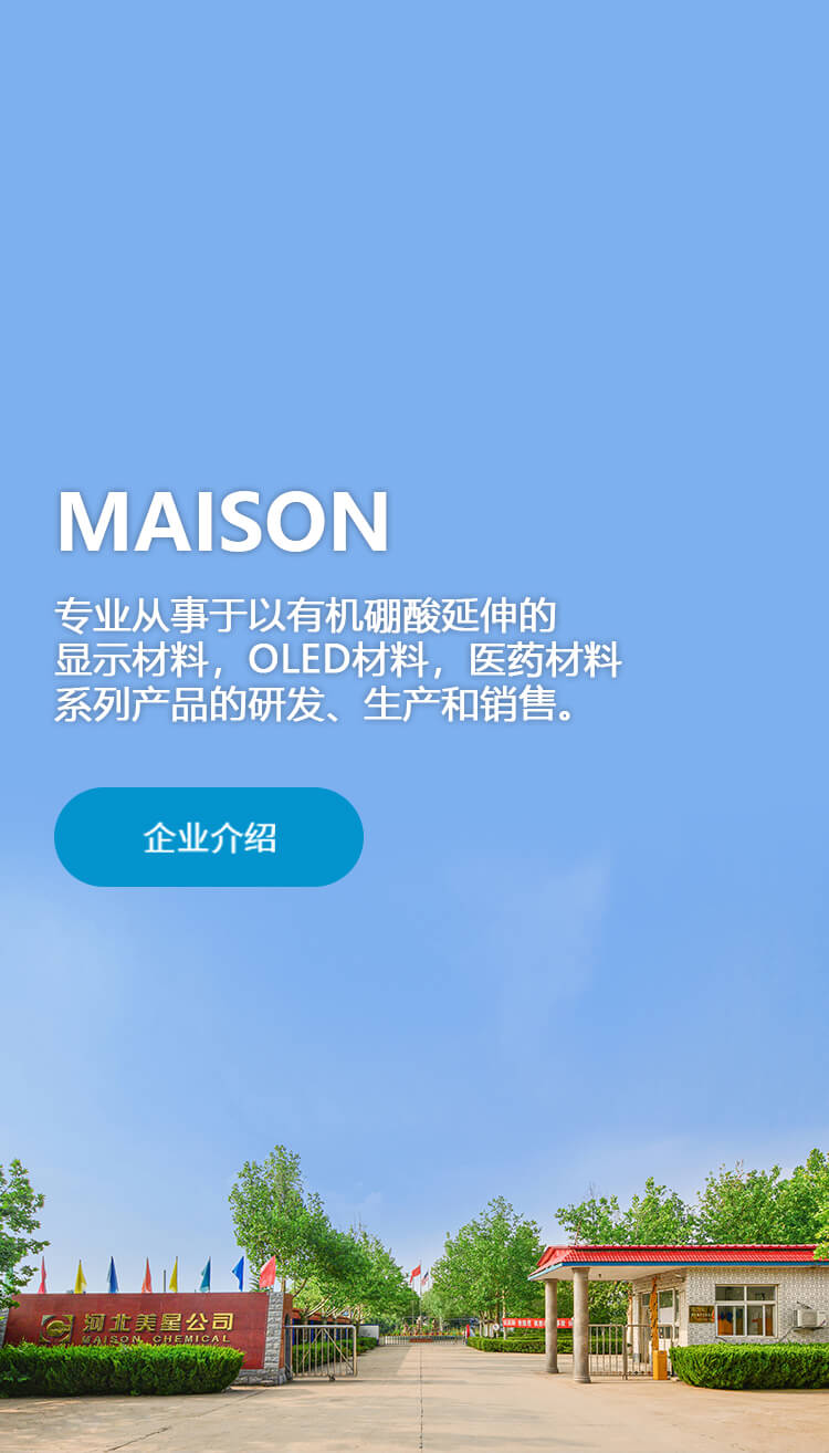 成立于2006年5月,专业从事有机硼酸、医药中间体、OLED中间体及液晶材料研发、生产、销售的中外合资的高科技企业。产品广泛应用于医药、半导体显示材料等领域。